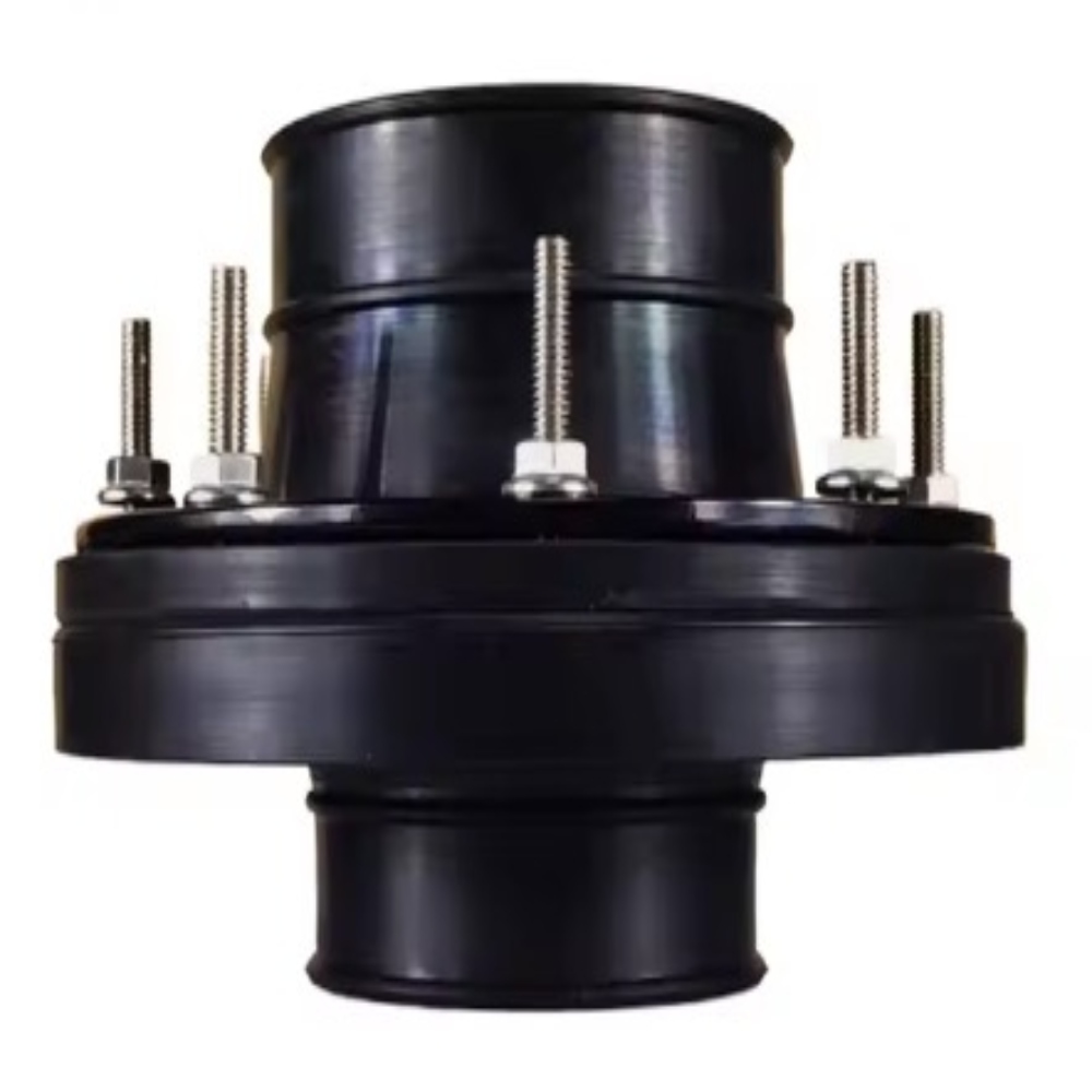 Bota de 2″ con reducción dispositivos de entrada flexible doble, utilizada para sellar toda perforación hecha en la caja contenedora para el paso en las líneas, estas botas cuentan con abrazaderas de bandas internas y externas que sellan firmemente a la pared del sumidero con pernos de acero, sujetadores y un anillo de compresión galvanizado.